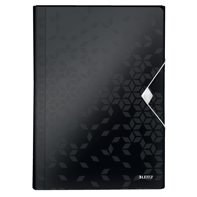 Aktovka z polypropylénu na ukladanie a prenos dokumentov do formátu A4. V dizajne WOW v žiarivých farbách. Atraktívne uzatváranie na gumičku, šesť roztiahnuteľných priehradok s indexami na popis obsahu, jedna priehradka na voľne vložené listy do formátu A4, vrecko na vizitky. Kapacita 250 listov. Väčšie balenie 5 ks. Farba čierna.