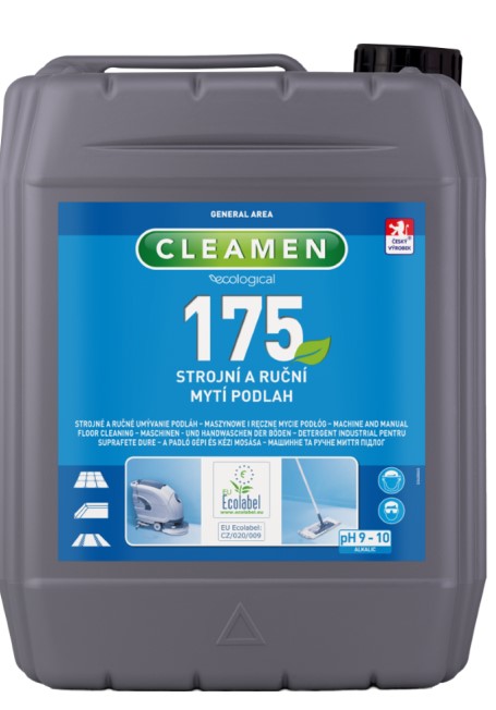 CLEAMEN Eco 175 na podlahy, 5 l - Koncentrovaný nízkopenivý prostriedok určený na strojné a ručné umývanie všetkých typov vodeodolných podláh ako je dlažba, teraco, PVC, vinylové podlahy, linoleum, marmoleum, lakované parkety, gumové podlahy a pod.