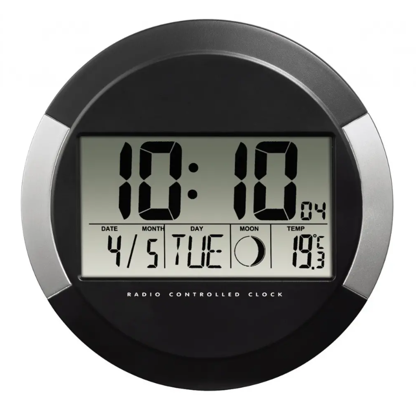Nástenné hodiny digitálne PP-245 24,5cm čierno-strieborné