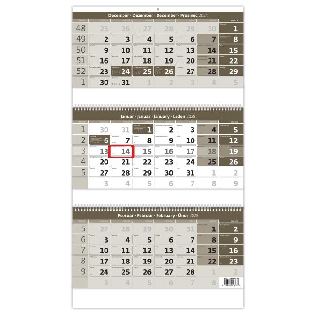 Nástenný kalendár 3-mesačný sivý so špirálou 31,5 x 55,5 cm 2026