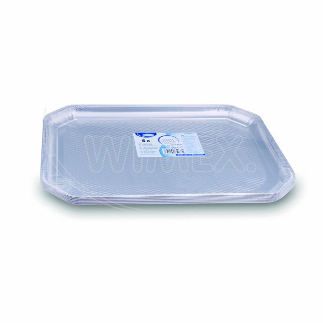 Hranatý hliníkový podnos s rozmermi 37,5 x 28 cm. Univerzálny pomocník pre servírovanie chlebíčkov, studených mís a ďalších pokrmov. Balenie obsahuje 5 ks.