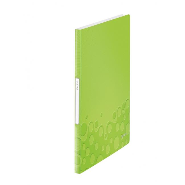 Katalógová kniha na prezentáciu dokumentov formátu A4, do ktorých sa často nahliada. Vyrobená z polypropylénu v dizajne WOW v žiarivých farbách. Vybavená 20 čírymi vreckami hrúbky 45 mic. a samolepiacou chrbtovou etiketou na popis. Väčšie balenie 10 ks. Kapacita 40 listov. Rozmery (š × v × h) 231 × 310 × 13 mm. Farba metalická zelená.