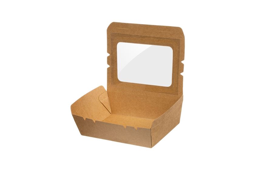 Krabica na jedlo kraft s okienkom PET, 1600 ml [50 ks]. Rozmer 18,80 x 13 x 6 cm.