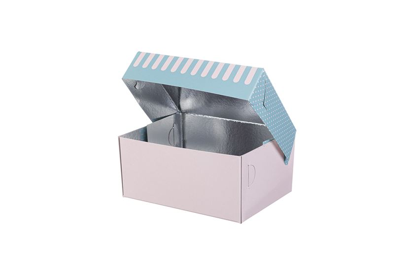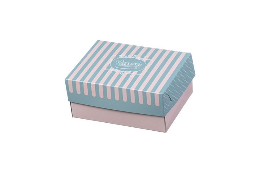 Papierová krabička na cukrovinky, zákuskya kadejaké iné dobroty. Vyrobená z papiera s ALU vnútorným potiahnutím, šetrná voči prírode. Elegantný motív krabičky PATISSERIE dáva možnosť širokej škály využitia, napríklad aj ako obal na darček. Krabička sa nestratí v cukrárni, hoteli, pekárni, reštaurácii, potravinách, domácnostiach, a určite nájde svoje využitie. Ak chcete potešiť zákazníkov alebo svojich blízkych, uložte cukrovinky, koláče a rôzne iné veci či pokrmy práve do tejto štýlovejkrabičky.