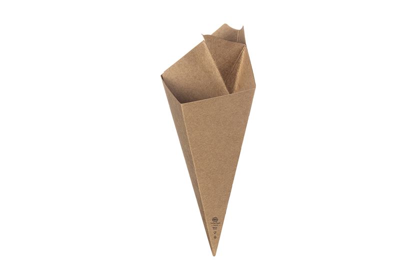 Ekologický papierový kornútz kraftu potiahnutého PE fóliou.Kornút je určený na street food do ruky,ako napríklad hranolky, chipsy alebo chicken nuggets, spraktickou priehradkou na omáčku. Kornút je ideálny pre všetky gastro prevádzky a fast foody, ktorým skutočne záleží na životnom prostredí.