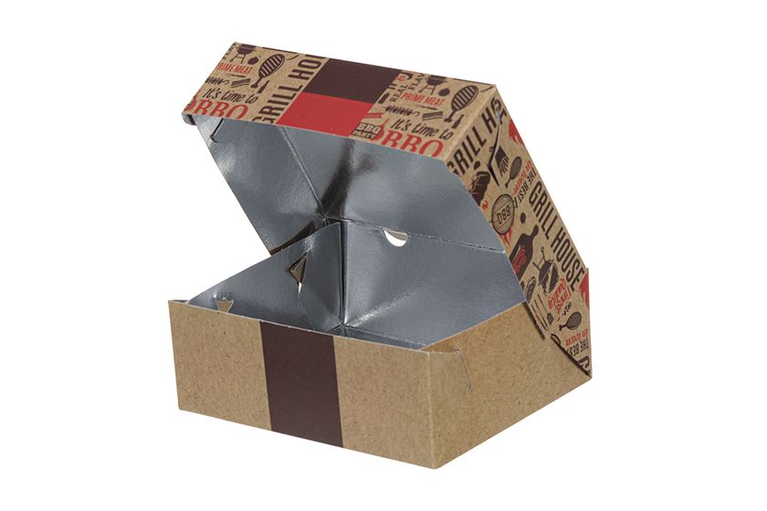 Box má ALU vnútorné potiahnutie,ktorého výhodou je vyššia odolnosť, dlhšie udržanie teploty jedla a zachováva chute nedotknuté arovnako výrazné. V porovnaní s obyčajným hliníkom, metalizovaný PET, ktorý bol použitý pre tento food box,chráni potraviny pred nebezpečnými emisiami hliníka pri kontakte s potravinami, ktoré sú príliš slané alebo kyslé, ako je to bežné v prípade grilovaných potravín.Vhodné do teploty max. 70°C.