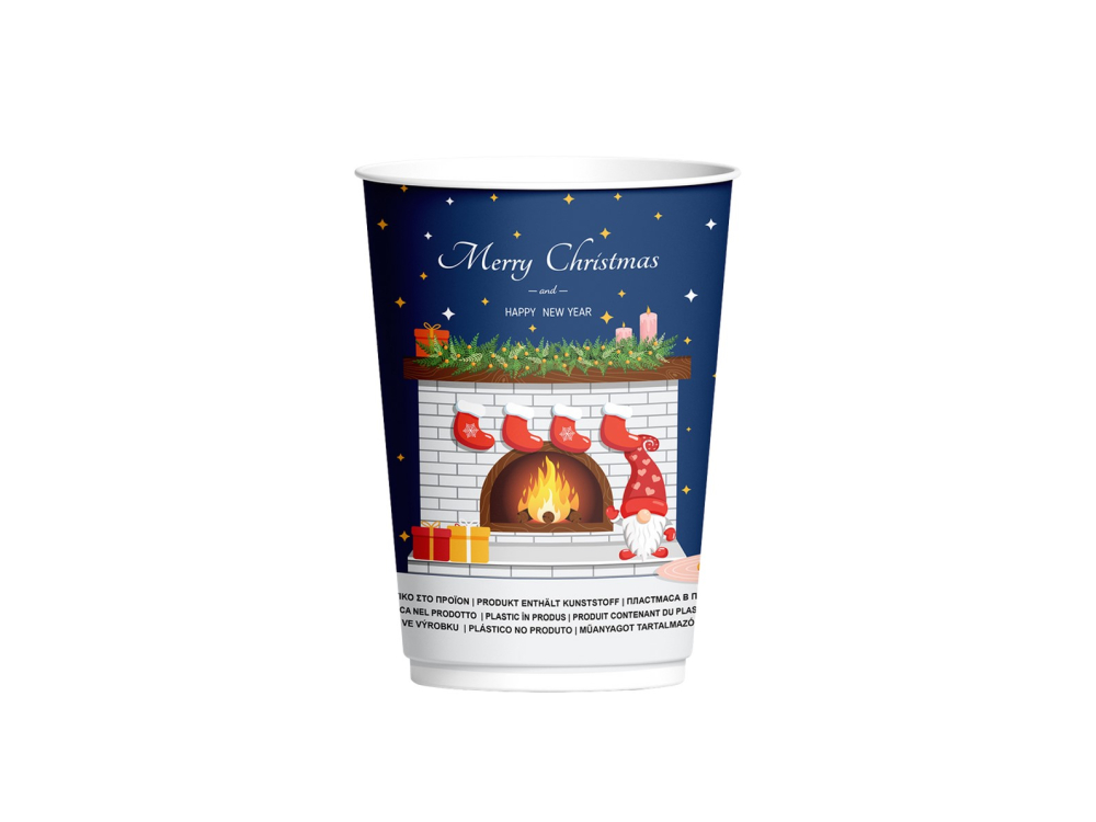 Papierový pohár Vianoce Christmas O90 mm/12oz, 330 ml [25ks] Typ A-Tmavo-modrý, 2vrstvový