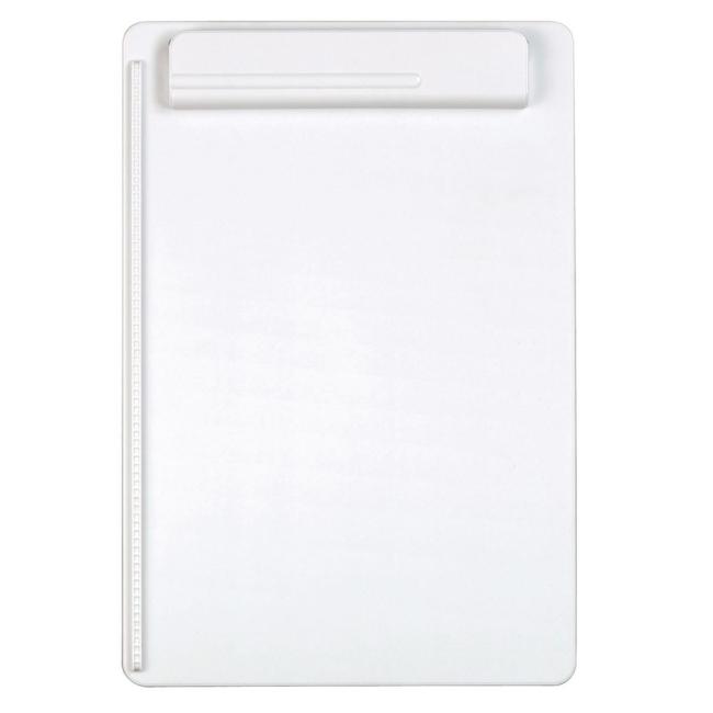Podložka na písanie z recyklovaného plastu, vyrobená udržateľným a sociálne zodpovedným spôsobom. Zarážka papiera vľavo, integrovaný držiak na písacie potreby. Široká svorka so silnými kovovými pružinami. Šírka spony cca 0,8 cm, hrúbka 0,3 cm. Rozmer 34,3 x 23,3 x 1,6 cm. Farba biela.