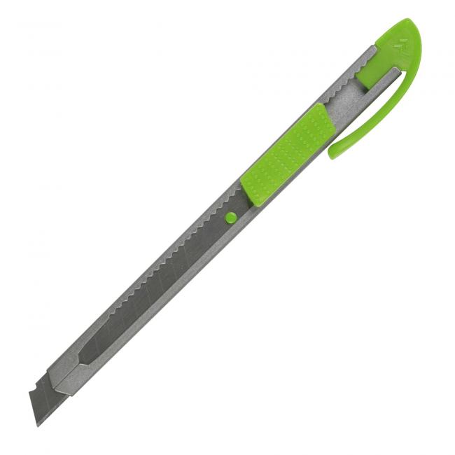 Rezač s kovovým vedením. Šírka čepele 9 mm. Farba čierna/ zelená. Úprava plastová.