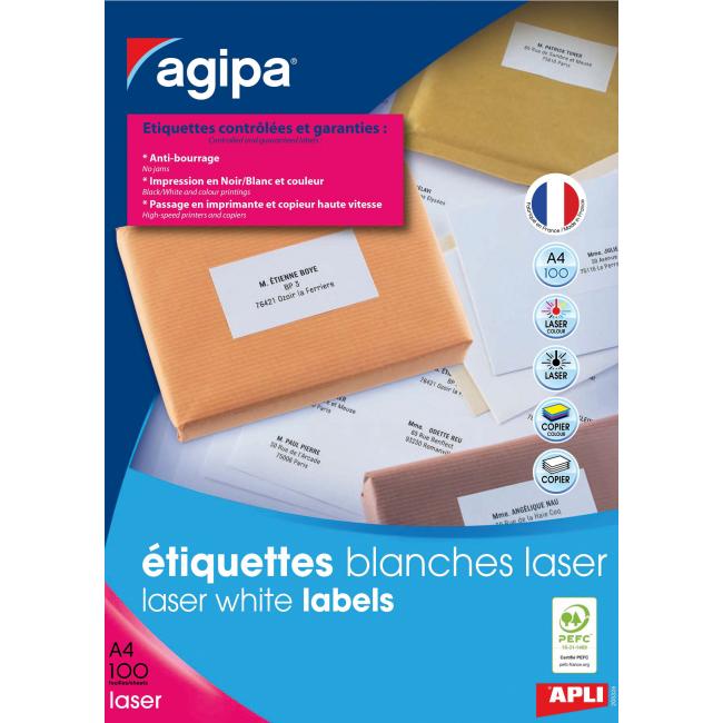 Etikety laser 52,5x29,7mm Agipa A4 100 hárkov