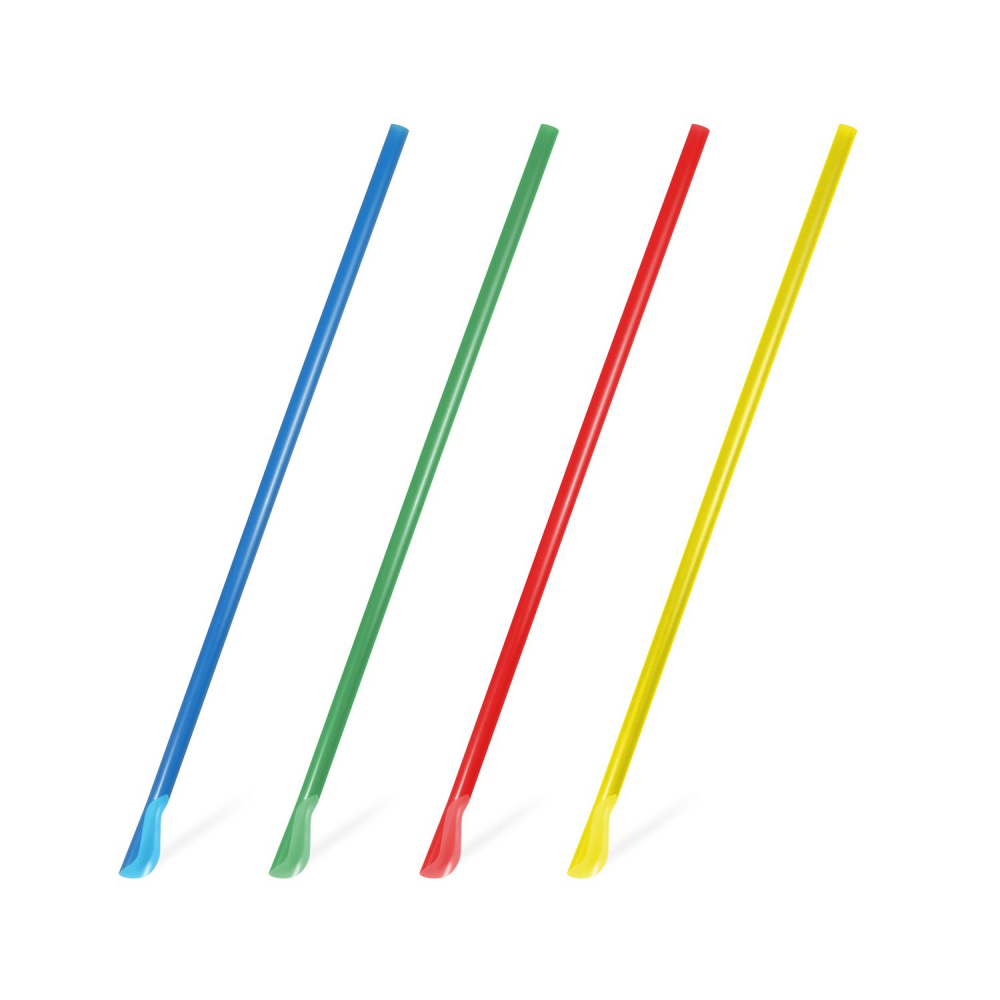 Slamky rovné s lyžičkou O6mm x 21cm [250 ks] REUSE. Opakovane použiteľné slamky z pevného plastu – vhodné až na 60 cyklov v umývačke. Skvelé pre každého, kto nechce meniť chuť svojho drinku!