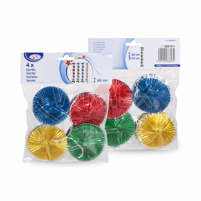4 ks lesklých závesných špirál s priemerom 7,5 cm a dĺžkou 60 cm.Kód dodávateľa: 66818