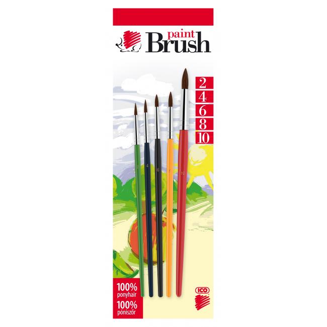 5 kusová sada guľatých školských štetcov s farebnou rúčkou. Štetina 100% poník. Ideálne na maľovanie vodovými farbami. Šírka štetiny 2-4-6-8-10 mm.