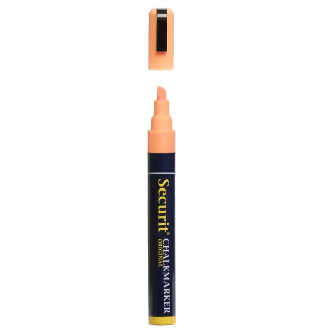 - Popisovač s tekutou kriedou vhodný na vytváranie nápisov na každý neporézny povrch, ideálny na tabule a ďalšie produkty značky Securit. Po zaschnutí sú nápisy odolné aj slabému dažďu a proti náhodnému rozmazaniu. Vyčistiť ich možno pomocou vodou navlhčenej handričky, prípadne s pomocou čističa Securit Cleaner (SECCLEAN).