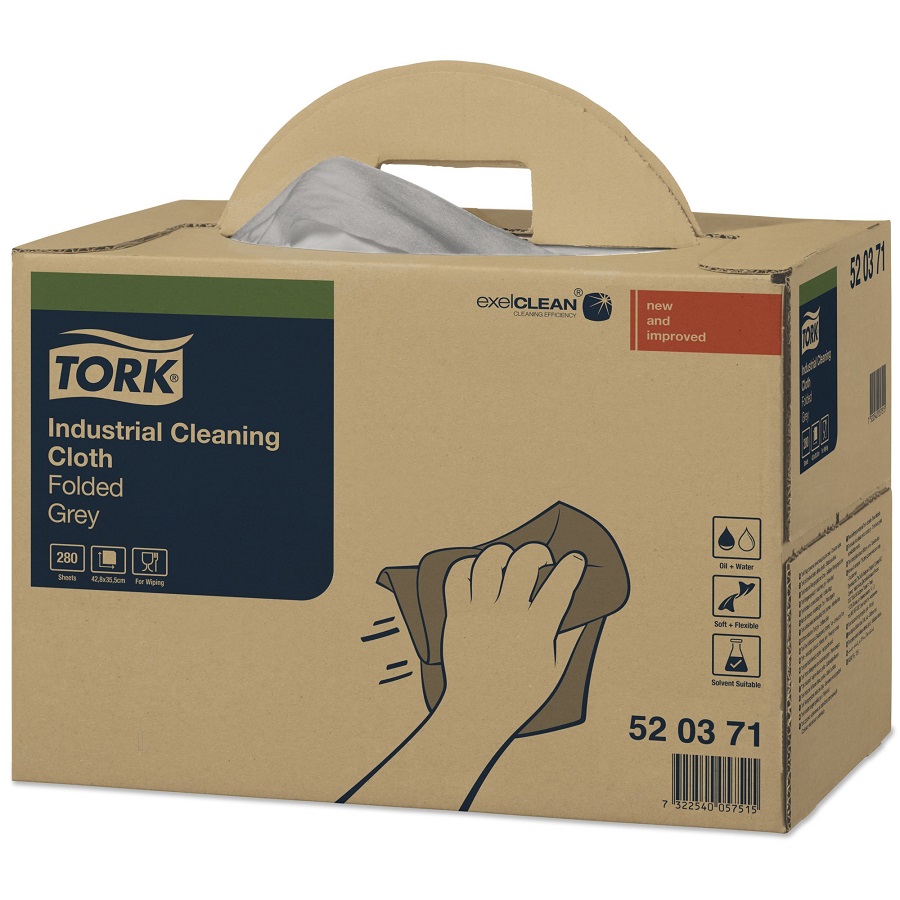 Priemyselná čistiaca utierka Tork je perfektnou alternatívou khandrám alebo utierkam na zapožičanie. Vďaka jej mäkkosti a pružnosti umožňuje čistenie stiesnených priestorov azložitých dielov bez poškriabania povrchu, no stále je dosť pevná, aby poutierala olej, mastnotu a špinu, pričom je vhodná pre väčšinu rozpúšťadiel. Táto utierka sa dodáva v ochrannom a prenosnom Handy boxe, vďaka ktorému je čistiaca utierka ľahko dostupná tam, kde treba.