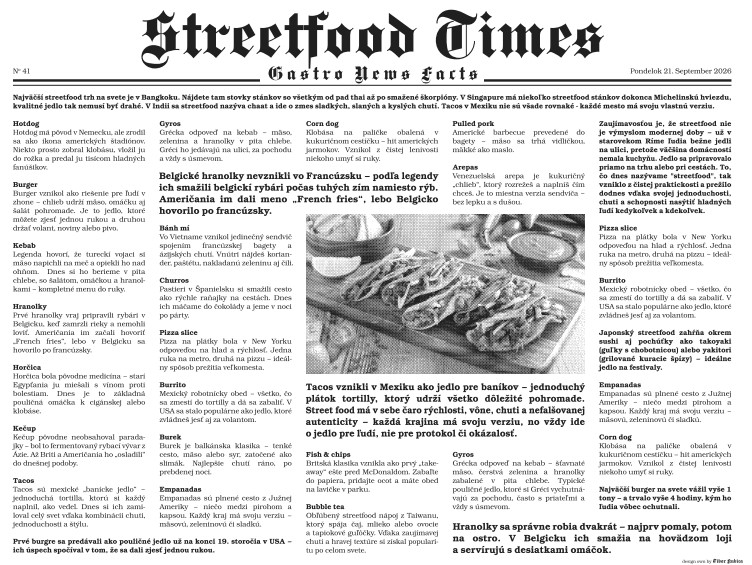 • originálny dizajn „noviny Streetfood Times“, ktorý zaujme zákazníka